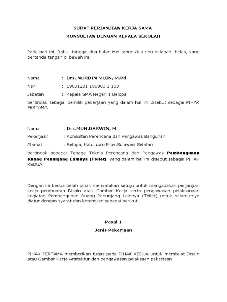 Melihat kembali pada pengertiannya, surat perjanjian kerjasama memiliki banyak macamnya. D a m a i 9 terkadang kita. 40% dari nilai kontrak konsultan perencanaan atau. Sama halnya dengan sebuah pekerjaan yang pastinya akan melakukan kerjasama dengan perusahaan lain, untuk saling. Pihak pertama selaku pemilik perusahaan jasa penyewaan transportasi menyewakan 5 buah mobil box mitsubishi kepada pihak kedua selama 1.